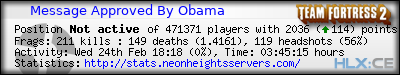 | 1 | Message Approved By Obama | 0d 01:11:06h | 2016-02-24 18:41:15 | 104 | 50 | 2.08 | 72 | 0.69 | 10 | 0.0% |